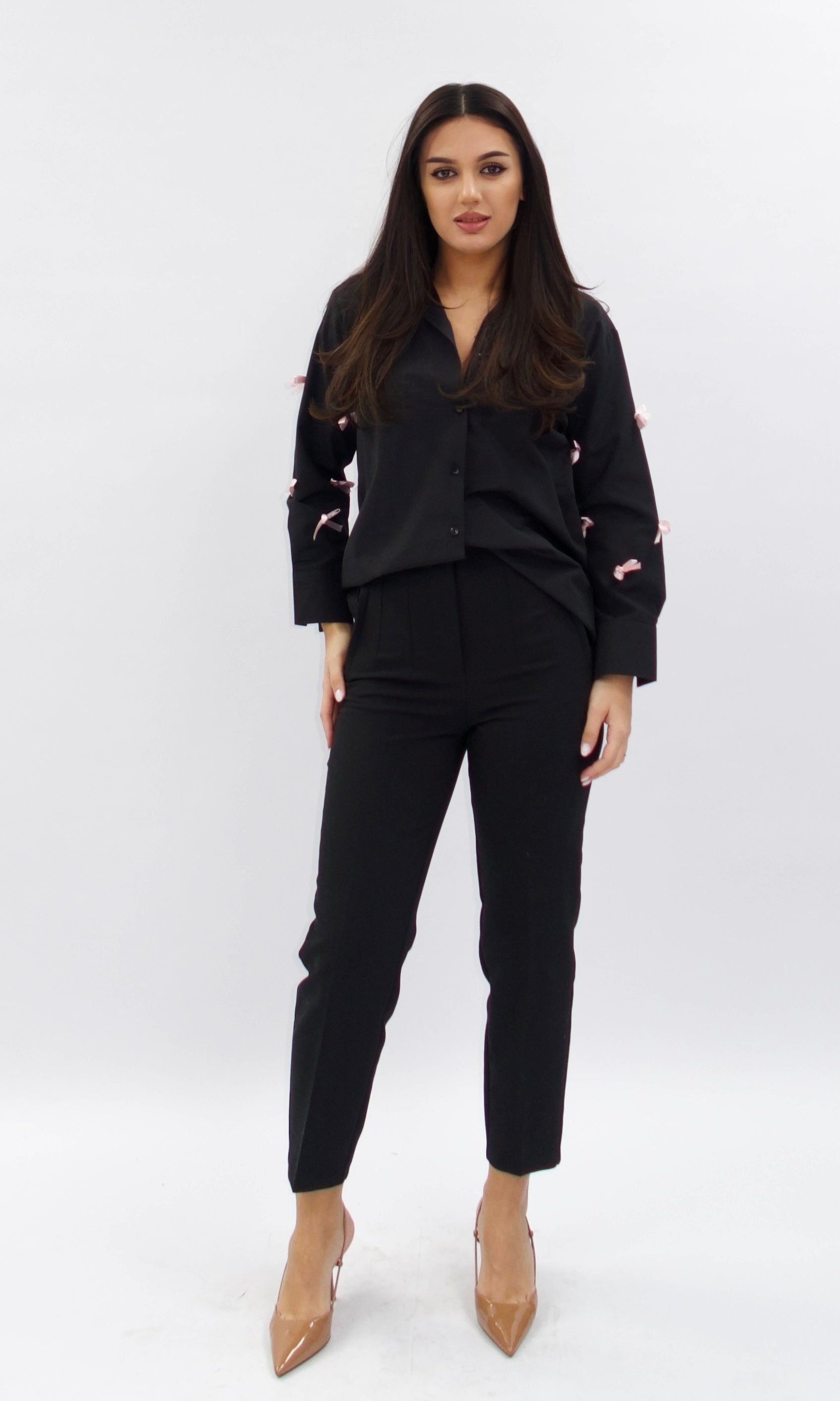 Cămașă Reina neagră cu fundițe decorative. Eleganță cu un twist feminin.