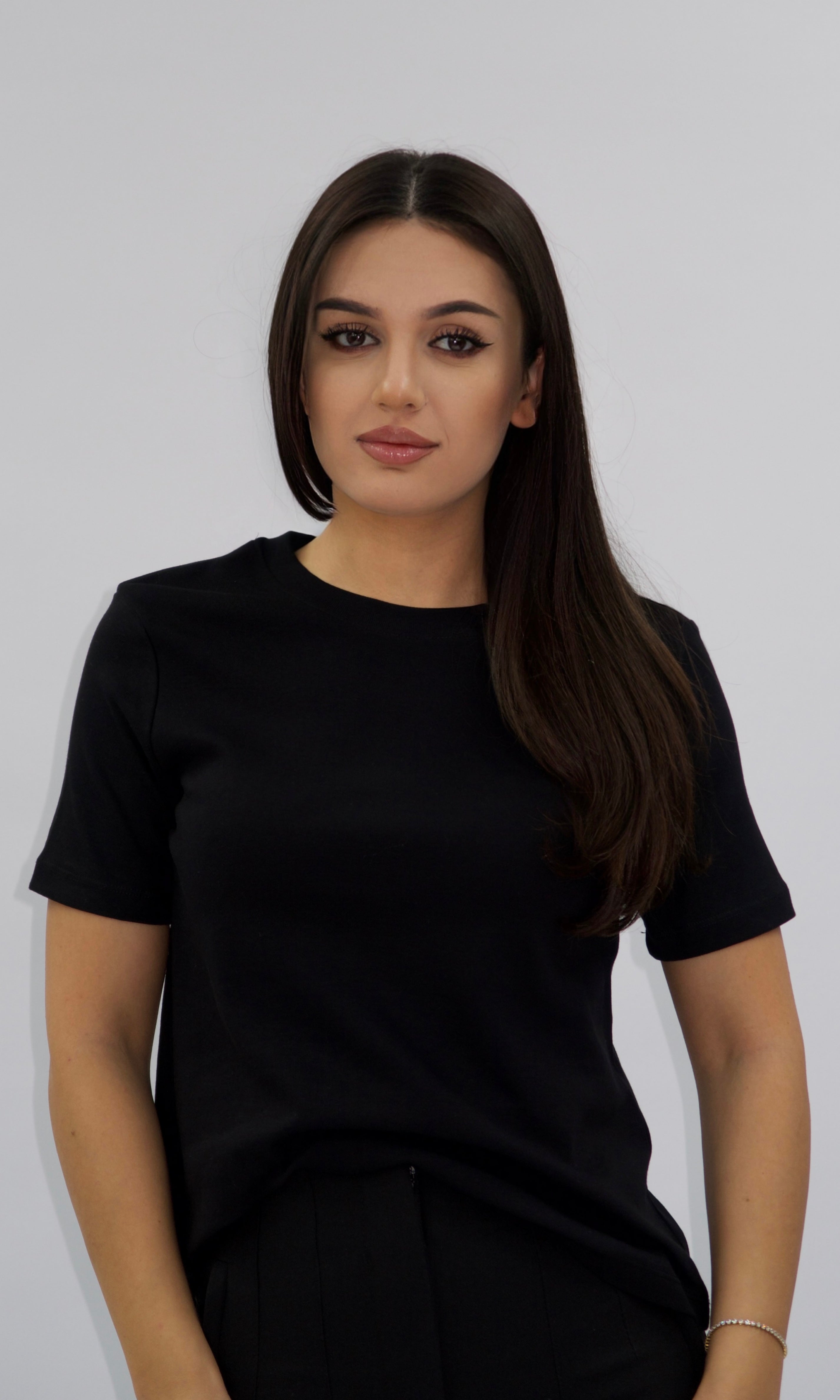 Acest tricou negru basic este un must-have în orice garderobă, oferind confort și versatilitate. Fabricat din bumbac moale și respirabil, are o croială clasică ce se potrivește perfect atât în ținute casual, cât și în combinații elegante, sub un sacou sau cardigan. Cu un design minimalist și ușor de asortat, acest tricou este alegerea ideală pentru un look relaxat, dar stilat, indiferent de sezon!